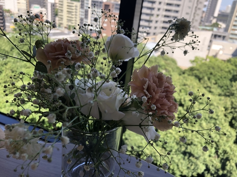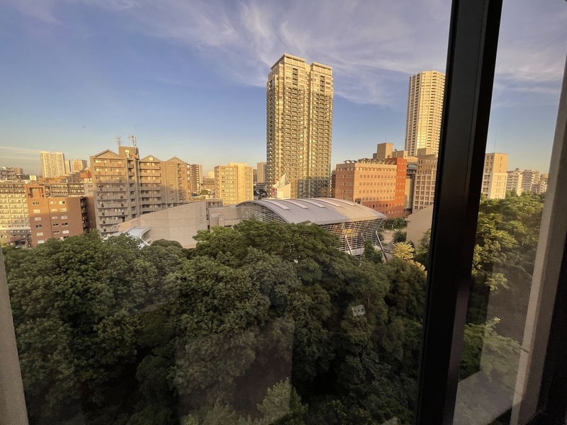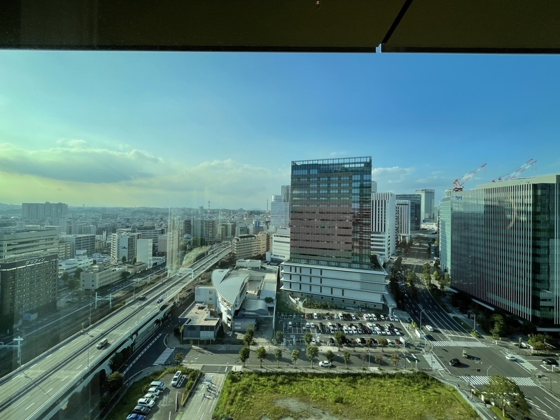 目の前にビルがある関係で外の景色は窓の半分くらいにしか見えないですね。笑
