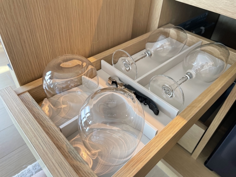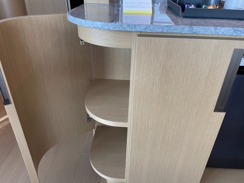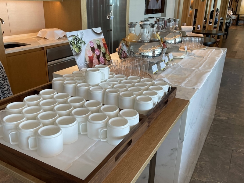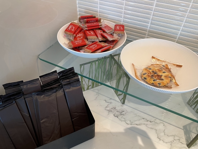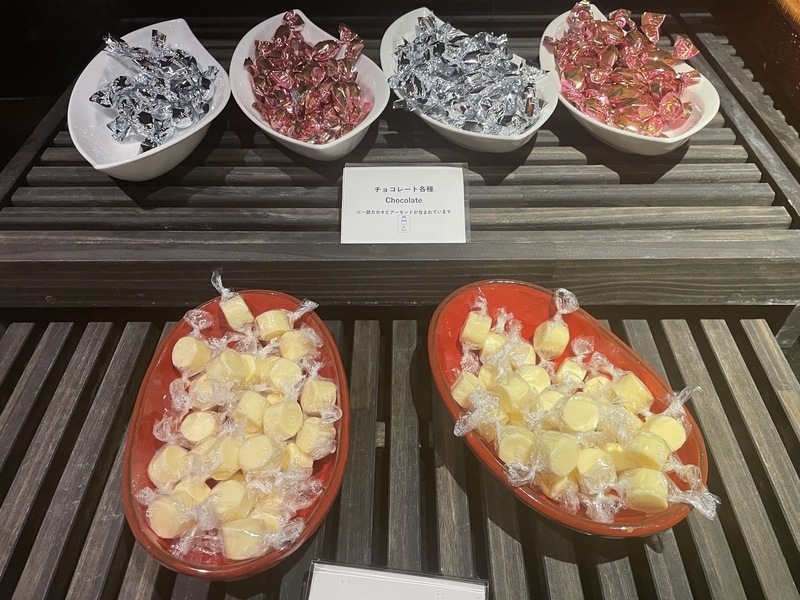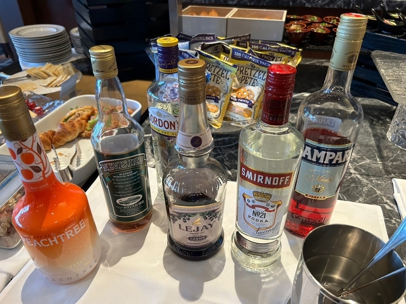 夕方になると、ワインやシャンパン、日本酒などのアルコールが提供され、軽食も充実。ラウンジで夕食代わりにすることも可能です。