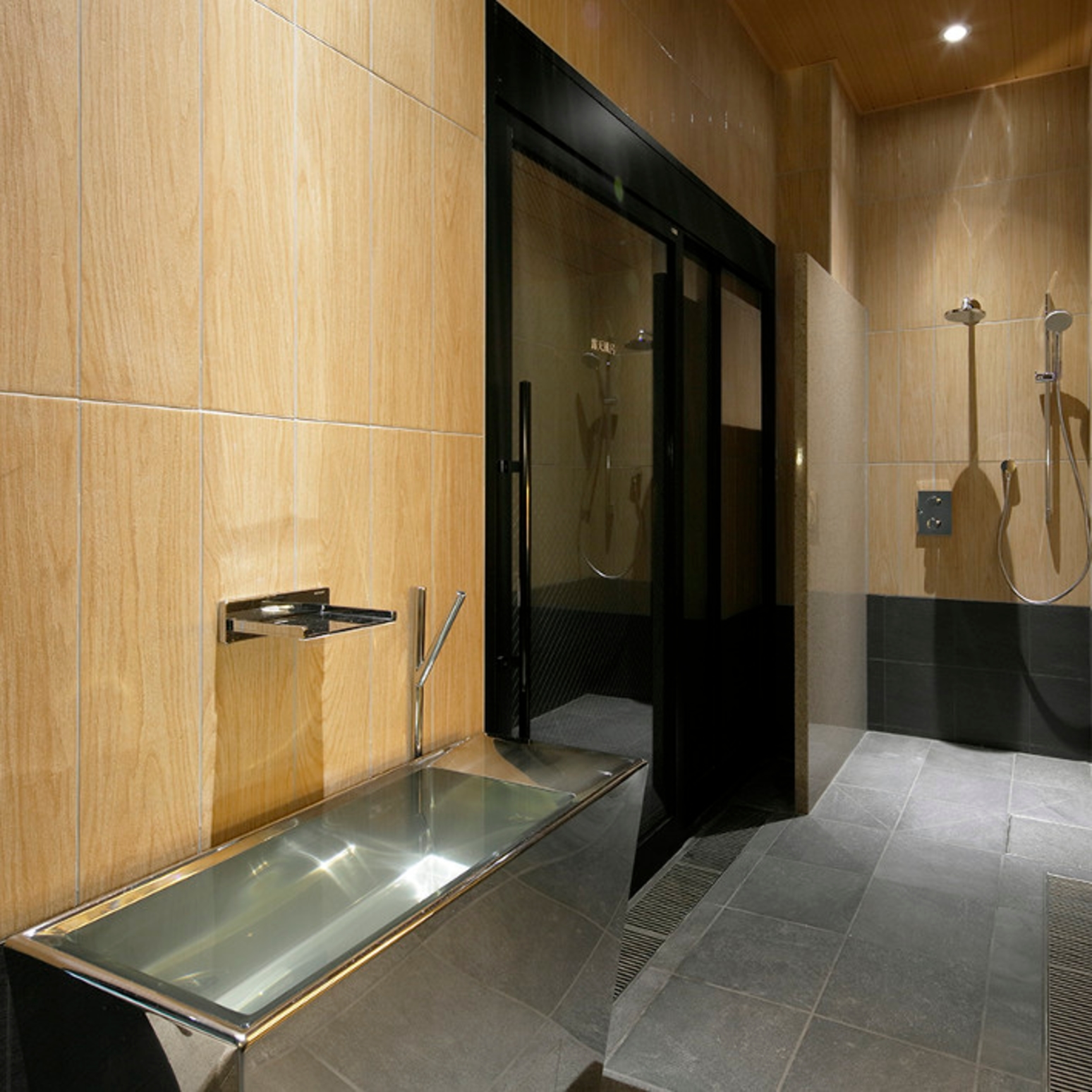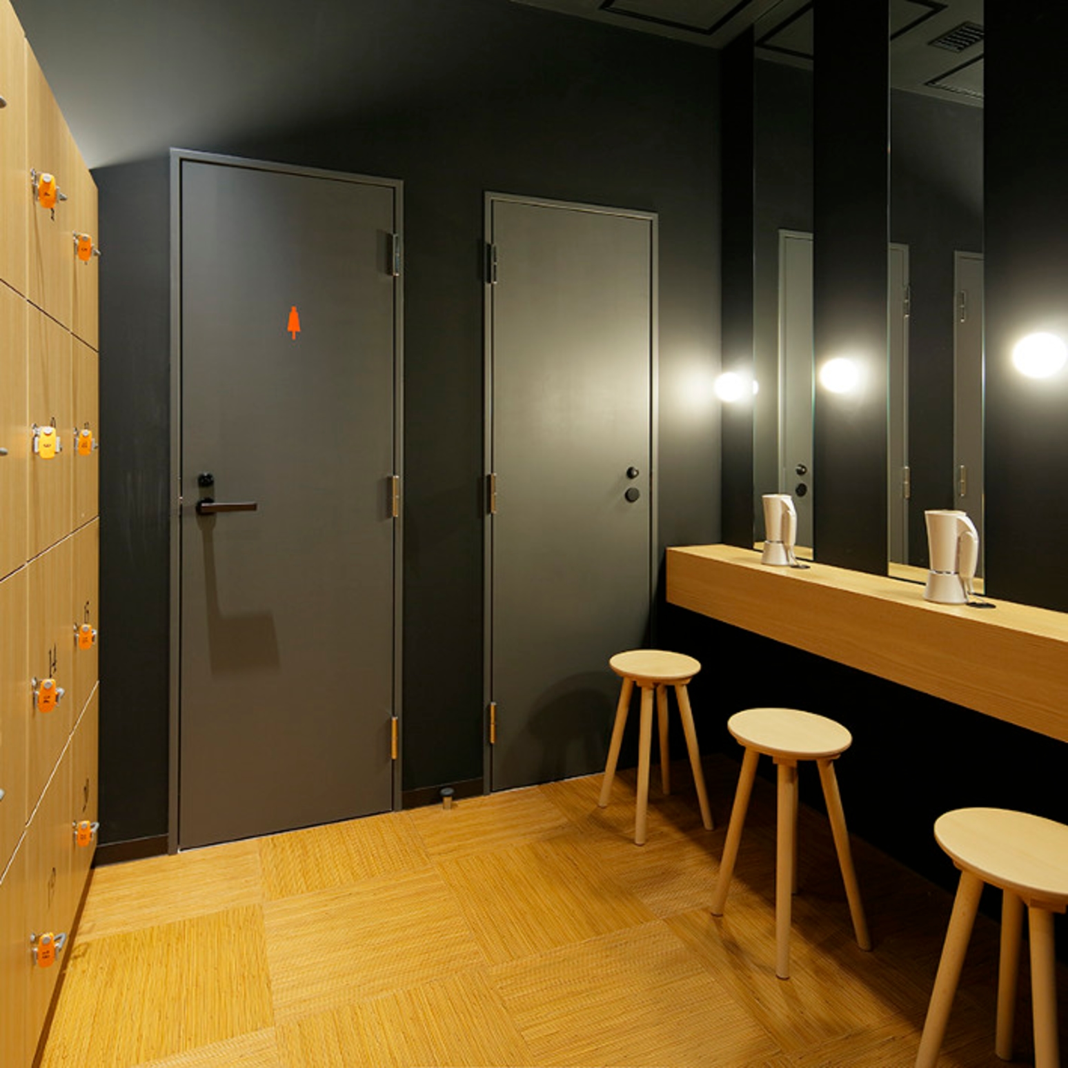 更衣室は木目と黒を基調として落ち着いた雰囲気